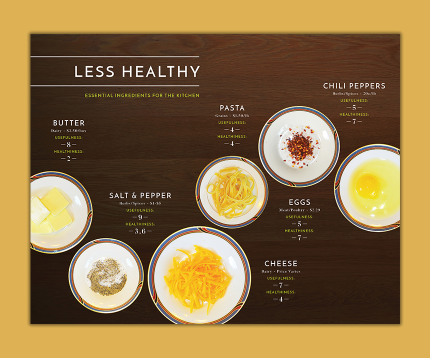 by healthiness, and then by usefulness in cooking. The posters place emphasis on the ingredients,