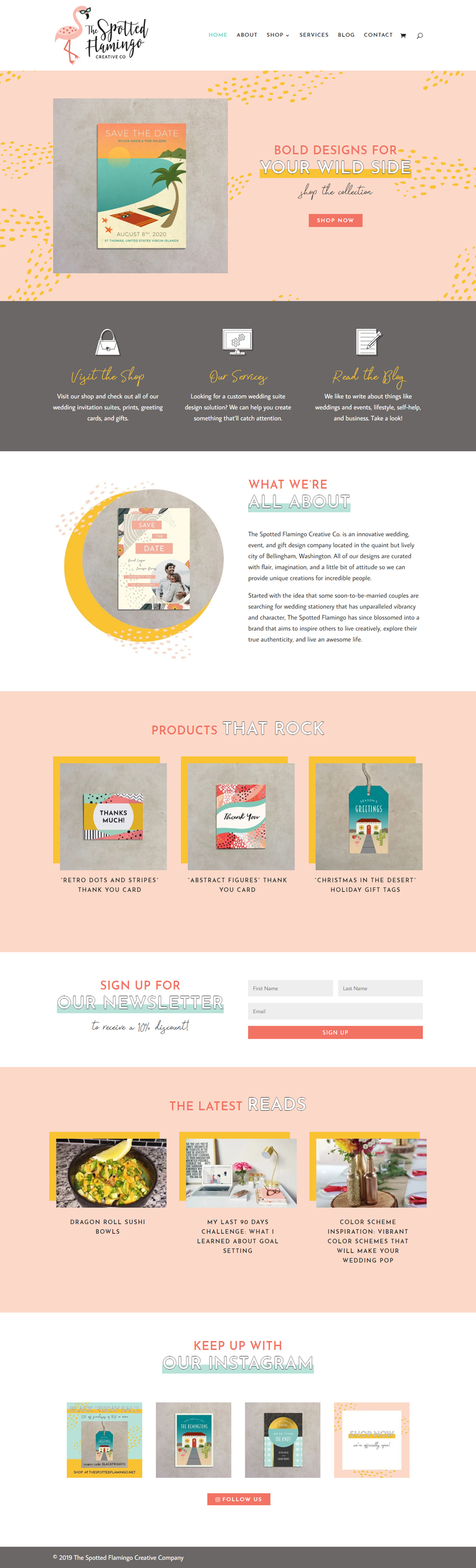 The Spotted Flamingo Creative Co is a company that I recently started as a passion project, and is still in the midst of being developed. The company's purpose is to create quirky, offbeat wedding stationery and designs for an audience that has a unique taste and wants to express that in their weddings and lives in general. Right now, I'm in the midst of completing the E-commerce website and adding more products. You can visit the